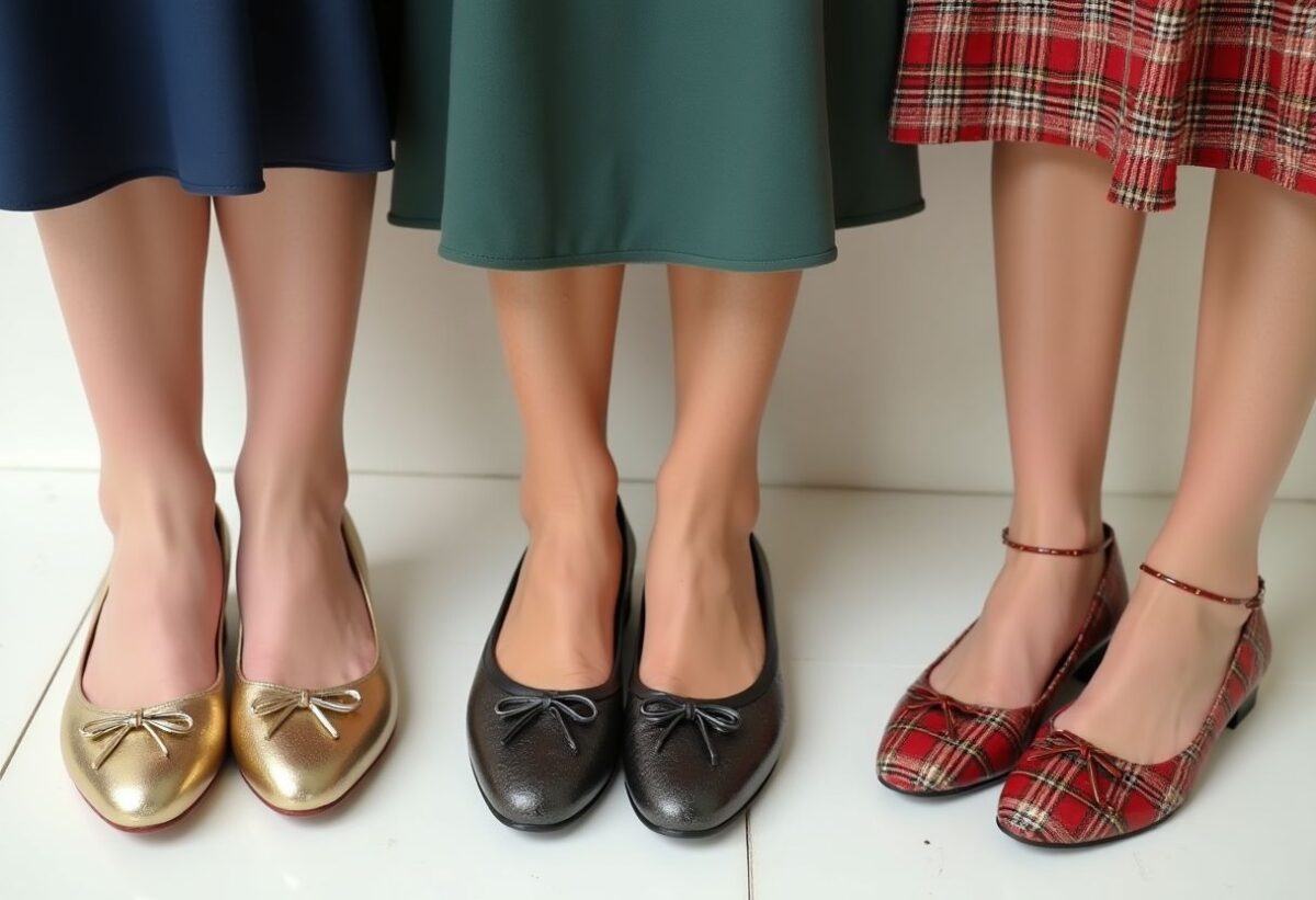 Pour un look romantique, associez une jupe midi plissée avec des babies à talons. Cette combinaison évoque une féminité intemporelle et peut être rehaussée d’un chemisier fluide.